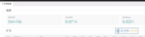 查看矿机运行状态,显示平均算力为 6.6251Gh/s。▼