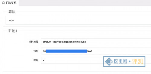 2. 配置矿池信息, dgb-odo 我们使用dgb256的匿名矿池 https://odo.dgb256.online/,如下图配置。▼