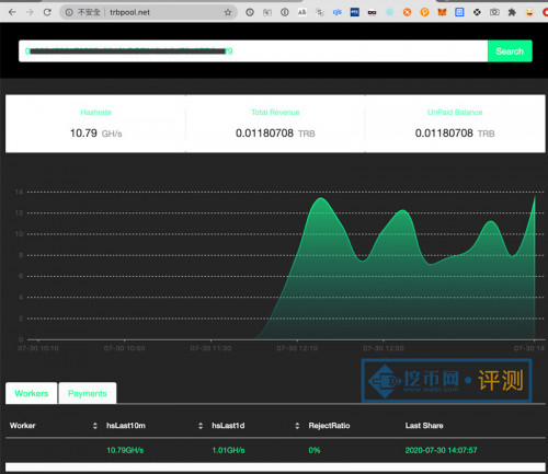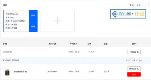 由于当前没有公开的tellor矿池所以,所以也没有办法公开测试。Blackminer还提供了一种托管的挖矿的方式,针对于托管挖矿的用户Blackminer提供了TRB挖矿服务。Blackminer给我们开通了一台托管矿机供测试使用。