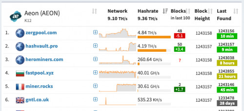 刷新好固件,配置矿池和挖矿地址。 K12算法就是挖AEON ,通过 miningpoolstate 我们查到 AEON最大的矿池是 http://zergpool.com/▼