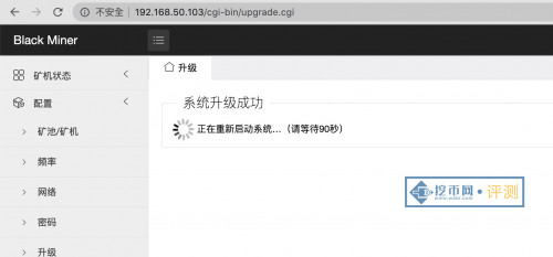 刷好rootfs后,再刷算法固件,依然是升级页面,跟刚才刷roofts一样,只是这次我们选择算法固件文件,需要挖什么就刷什么算法的固件,我们先刷kadena算法固件▼