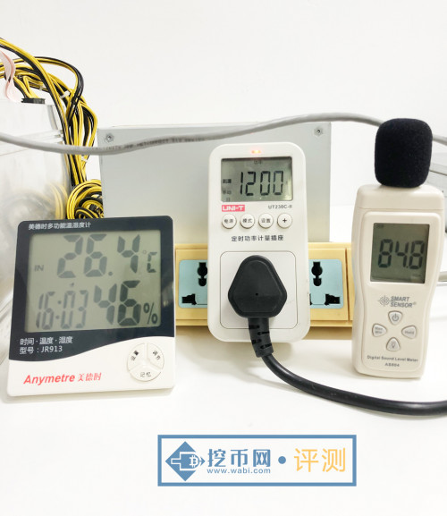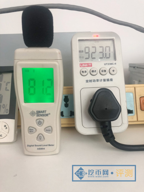 室内温度26度测得K12算法矿机功耗为920.5W。矿机噪音为78.6分贝▼